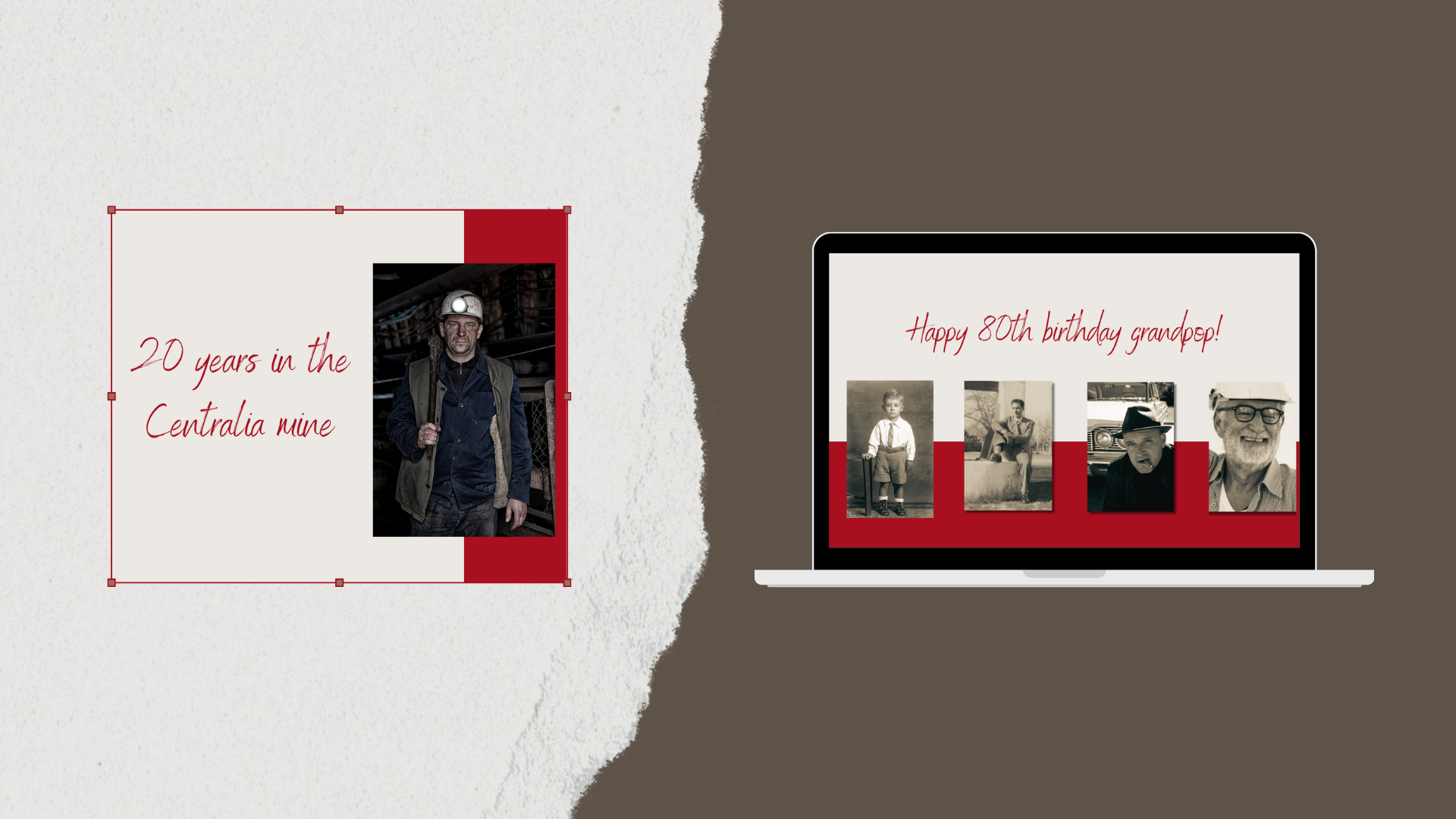 Lebilincselő videó, amely életre kelti családod történetét. A fényképek, feliratok és az aláfestő zene együtt idézik fel és őrzik meg az emlékeket – legyen szó egy különleges alkalom megünnepléséről vagy a fiatalabb generációk megszólításáról.